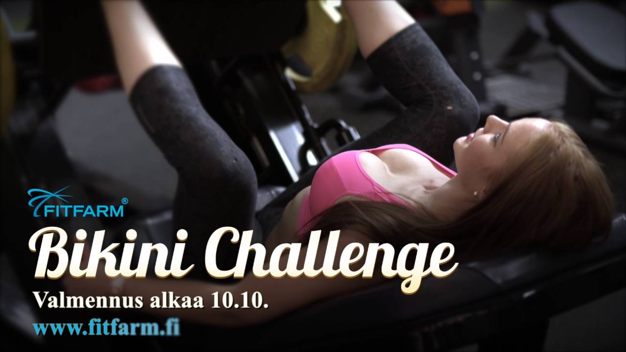 Bikini Challenge -verkkovalmennuksella muokkaat kroppaasi ja poltat rasvaa tehokkailla salitreeneillä sekä hauskoilla, toiminnallisilla treeneillä ja monipuolisella ruokavaliolla. 10.10. Bikini Challenge starttaa nyt ihan uusilla treeneillä ja ruokavaliolla! Mukana myös supersuosittu Paras Muutos –kisa, jonka palkintona on 1000€! Ota haaste vastaan ja liity mukaan osoitteessa http://www.fitfarm.fi/bikini-challenge/.