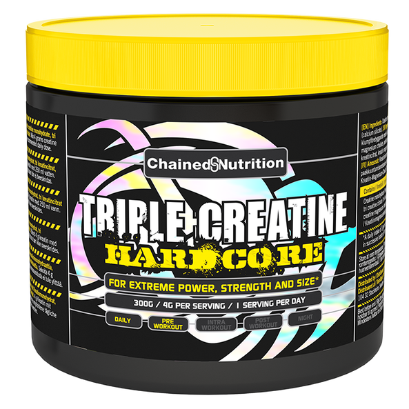 Triple Creatine Hardcore – Chained Nutritionin vahva kreatiinituote, joka sisältää kolme kreatiinimuotoa maksimaaliseen imeytymiseen ja tehoon!