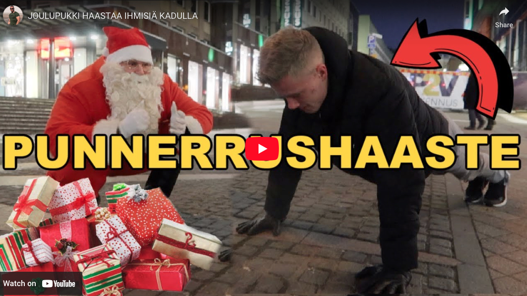 Joulupukki jalkautuu Jyväskylän keskustaan haastamaan ihmisiä. Onnistu haasteessa, nappaa joululahja!