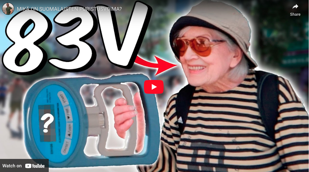 Selvitetään suomalaisten puristusvoima! Käytetään puristusvoimatestin viitearvoja, jossa skaalataan puristettava tulos iän sekä sukupuolen mukaan ja etsitään kohdan “selvästi keskimääräistä parempaa puristusvoima”.