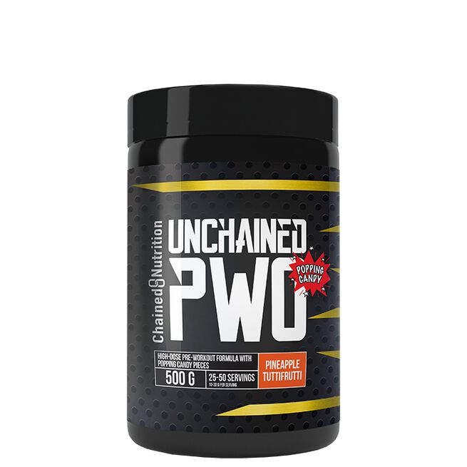 Unchained PWO on Chained Nutritionin tehonlisääjä, jossa on suuret annostukset ainesosia. Hyödyllisten ainesosien lisäksi se sisältää popping candy -palasia.
