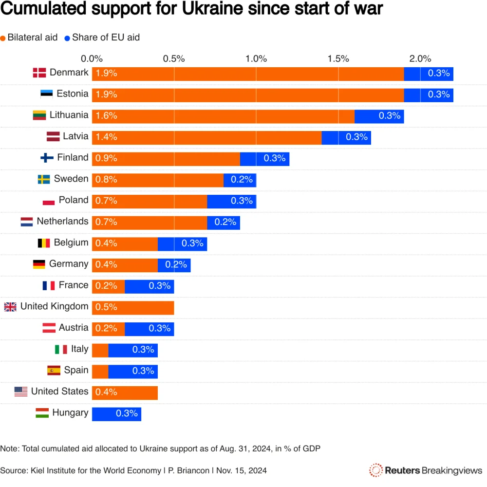 EU on rahoittanut Venäjän armeijaa tuhansilla miljardeilla euroilla, käytännössä koko armeija on rakennettu eurooppalaisella rahalla vaikka USA on tästä varoittanut toistuvasti vuosikausia. Eurooppa on lisäksi sodan aikana tukenut Venäjän sotaponnisteluja kolminkertaisella summalla Ukraina-tukeen nähden. Toisin sanoen nettona Eurooppa on tuessa Ukrainalle reilusti miinuksen puolella.