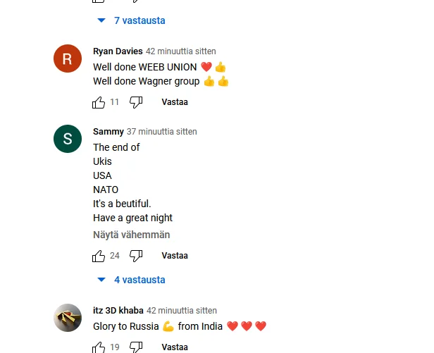 Melkoisen pro-Russia -kanava. Ja kommenttiosio myös.