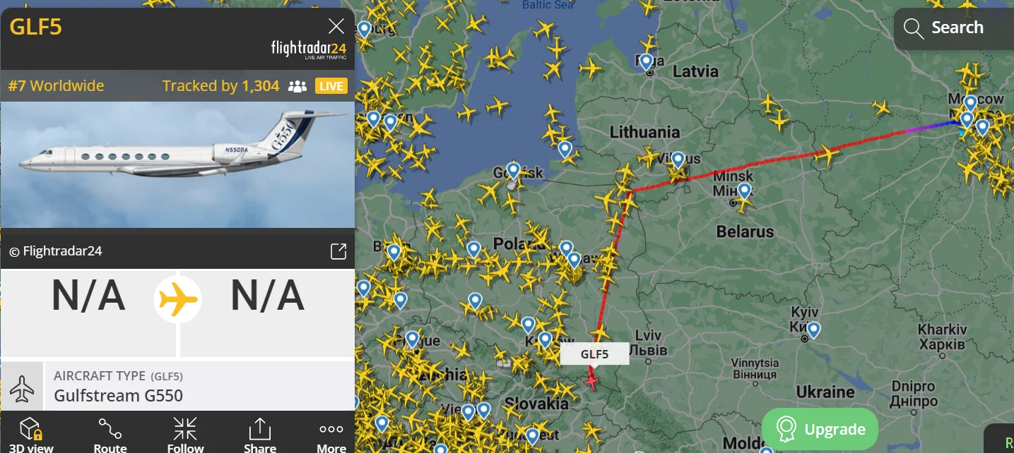 ''Moskovasta lähteny ja Puolan ilmatilassa käyny ja nyt Slovakian ilmatilassa.'