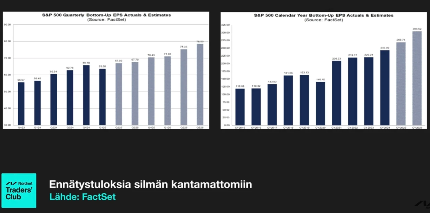 Kerroppa nyt omin sanoin mitä nuo kuvaajat kertoo. Ekassa kuvassa EPS on laskenut, mutta jatkossa muka se nousisi, miksi? Actualit on myös toisessa kuvassa 2024 eli Bidenin ajoilta ja estimaatit on estimaatteja, eikä faktoja.