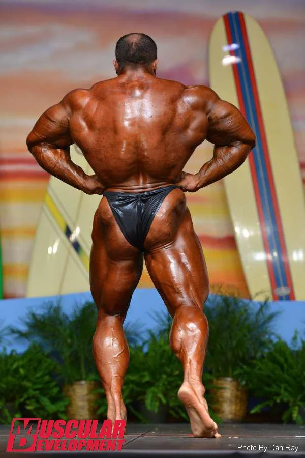 Julmetut massat miehellä, omaa luokkaansa. Mutta mikä lie selän tilanne, näyttää kummalta toisessa posessa. Kunto vajaa. Kisasi siis? Näyttää guest-pose-kunnolta.
