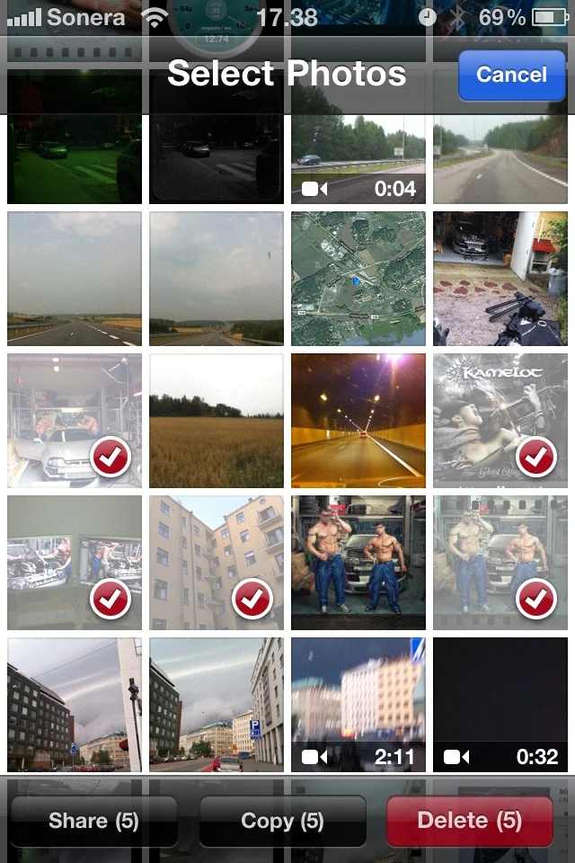 Mailiin saat 5 kuvaa kerralla galleriasta kun valitset useamman. Samoin voit samasta näkymästä ottaa vaikka "copy", niin monta kuin haluat ja "paste" siihen replyyn.Tässä on vuorokausi oltu iPhone 4:n kanssa, edellinen puhelin oli Nokia E71. Tässä pari (negatiivissävytteistä) huomiota: