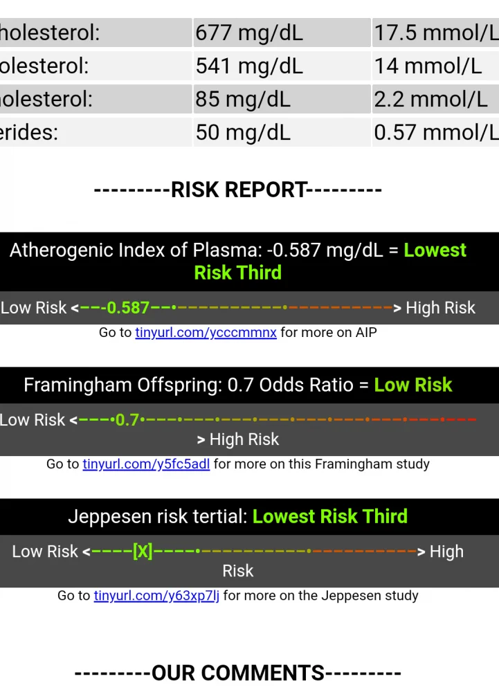 Koitin olla ironinen kunnes ironia muuttui todeksi kun työterveydestä soitettiin ja kehoitettiin jatkotutkimuksiin, koska LDL. Olin toiveikas, että lääkärillä olisi ollut ymmärrystä kolesterolista/lipideistä mutta valitettavasti näin ei ollut. Esim. TG/Hdl suhde on turha ja tyydyttynyt rasva on saatanasta. Taidettiin olla eri mieltä joka asiasta, eikä siinä mitään.