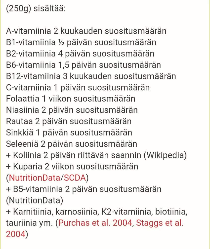 Ihan yleisesti vois kyseenalaistaa koko rautapuutosepideamia käsitteen kun tuntuu että kaikkien pitäis syödä jotain rauta lisukkeita voidakseen hyvin. Jengi mittaa seerumiraudan ja siitä lääkärit päättelee että nyt on vajausta. Se rauta on kertynyt ihan muualle, eikä sitä voi mitata kuin kalliilla magneettikuvauksella, jota Suomesta ei edes saa (tai maksasta näyte) pala. Enemminkin kupari ja magnesium puutos (tässä synteettinen D haittaa ja niitähän popsitaan ihan käypäohjeistuksenkin takia kun TAAS kaikillapuutosmantra) on yleisempää ja se aiheuttaa raudan metabolian häiriintymisen ja siitä kärsii ekana perna kun sisäelimetkin alkavat olla liian rautaisia. Ite syön kuparia ja magnesiumia raudan tasapainotukseen. Jos/kun tulee histamiinioireita niin B2 ja sinkki jeesaa.