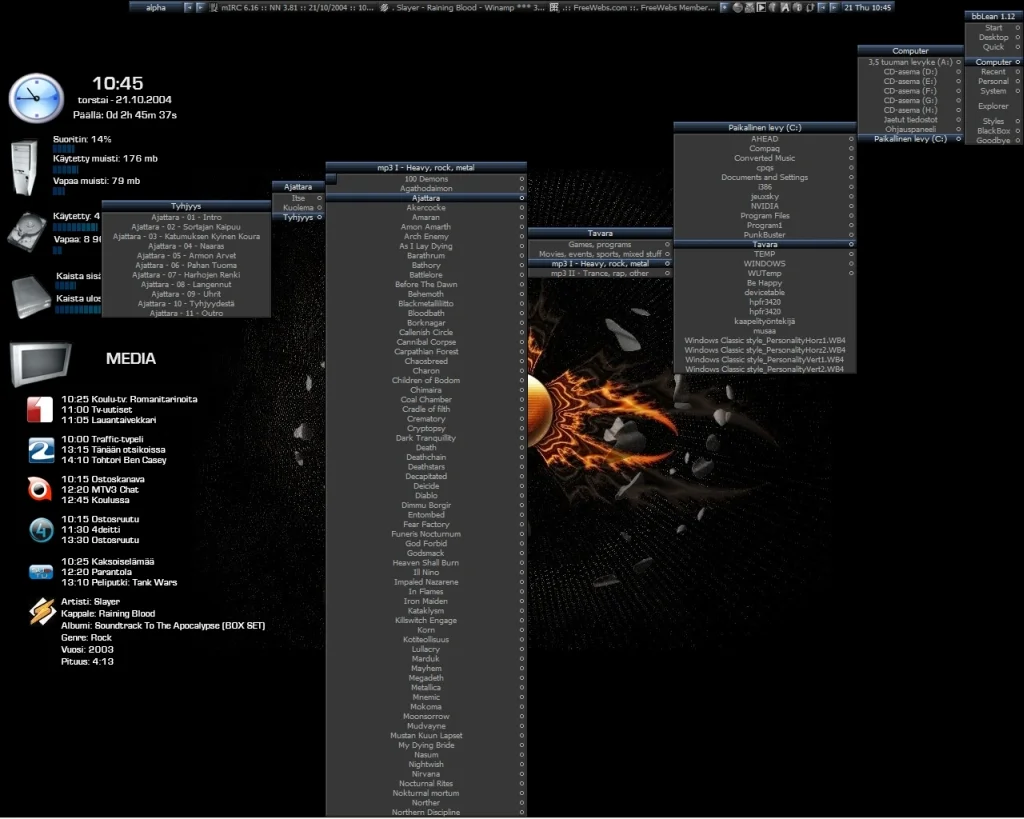 No niin... Tämän threadin innoittamana pistin minäkin desktoppini totaaliseen remonttiin. Lopputulos löytyy tästä linkistä. Käytössä Samurize ja StyleXP