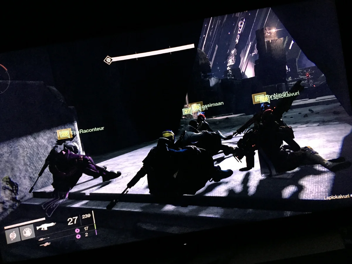 Sitten tosiaan Miken ja MrF:n kanssa hierottiin Nightfallia varmaan yli tunti, jatkuvasti hirveetä peruuttelua ja välillä logataan ulos ja joinitaan fireteamiin jotta saadaan pelaaja takaisin henkiin :D MrF kykkii tyyliin koko bossfightin jossain nurkassa jotta on varuilta edes yksi pelaaja hengissä, haha. Tästä nightfallista itselle tuli legendary engram, josta sitten lege machine gun.