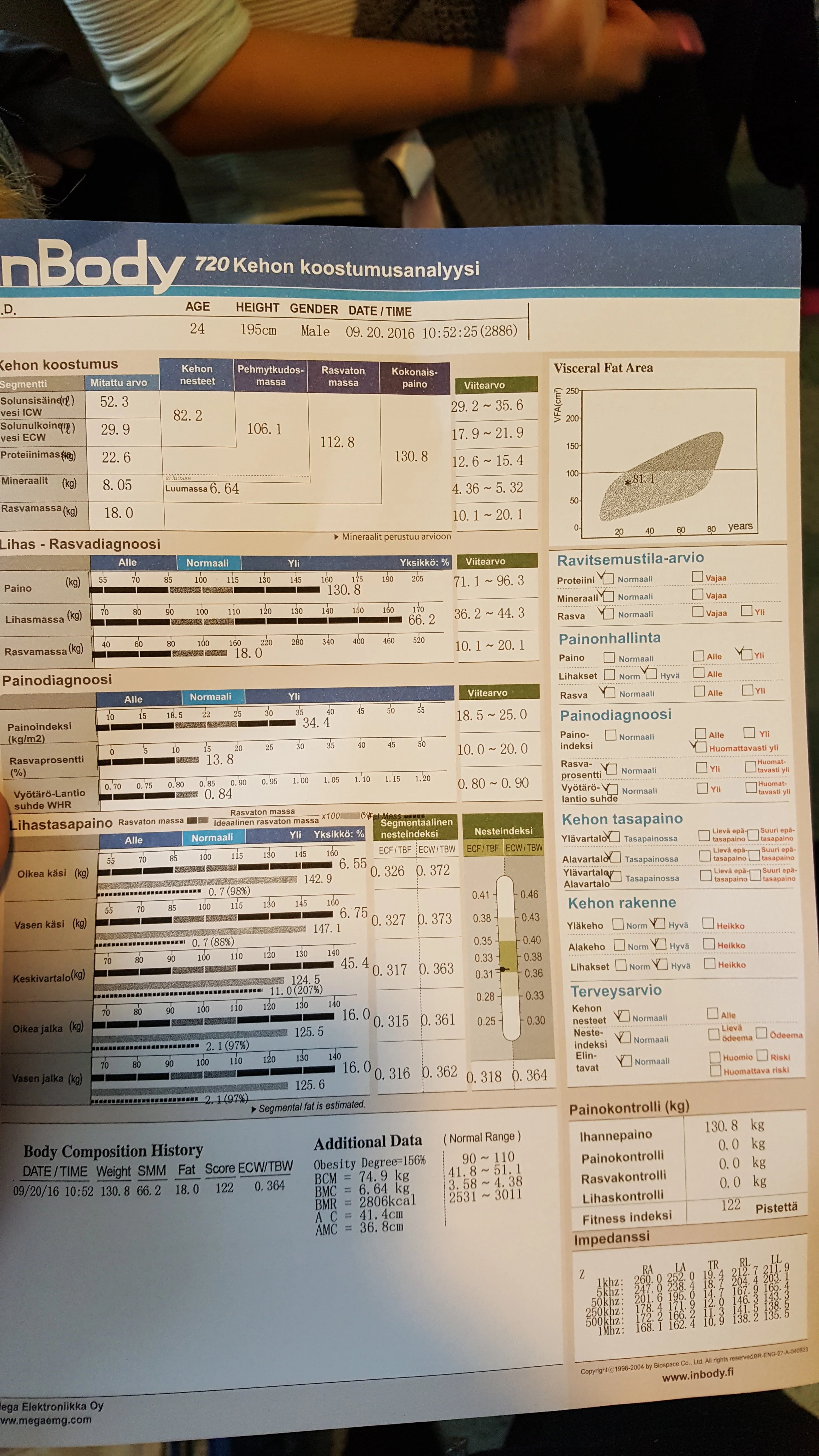Kävin eilen ottamassa InBodyn kun oli alennuksessa tuo mittaus.