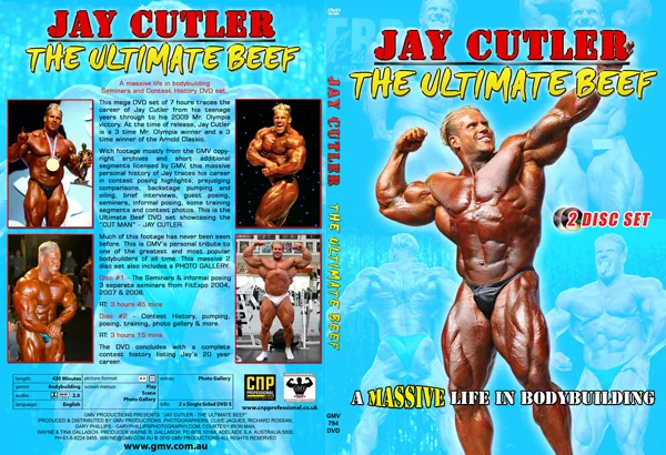 With footage mostly from the GMV copyright archives and short additional segments licensed by GMV, this massive personal history of Jay traces his career in contest posing highlights, prejudging comparisons, backstage pumping and oiling, brief interviews, guest posing, seminars, informal posing, some training segments and contest photos. This is the Ultimate Beef DVD set showcasing the “CUT MAN” – JAY CUTLER.