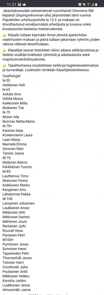 Seurat katsoin läpi ja lähin on Kiuruvedellä ja luonnollisesti liityin Kiurun vääntäjiin, koska entinen kotikuntani myös. Nyt on yksi kaveri tuosta Nilsiästä myös innostunut, niin on treenikaveri vähän lähempänä. Huomenna jumpataan taas huolella.