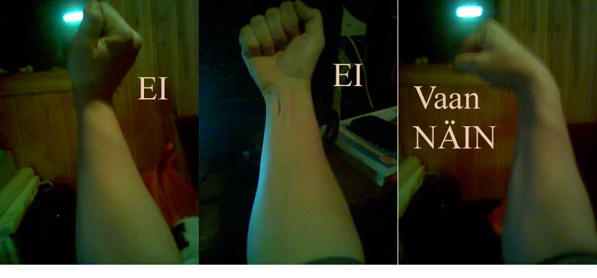 Ellette sitten itse tiedä jotain kikkoja, erityisesti haluisin tietää miten kaverin rannetta kannattaa vääntää että sais toisen vääntövoiman minimoitua.
