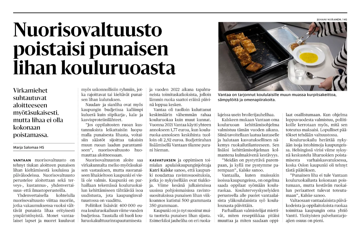 Virkamiehet suhtautuvat aloitteeseen myötäsukaisesti, mutta lihaa ei olla kokonaan poistamassa.