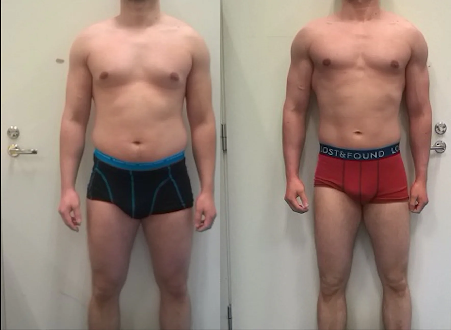 Huomenna lähtee! Tällä hetkellä painoa semmonen ~86 kg ja tavoitteena ois sinne <10% rasvoihin tiristellä. Kalorit 2300/2500 lepo/treenipäivä. Räpsäsin lähtökondiksesta kuvan; oisko rasvat jotain ~18-20%?