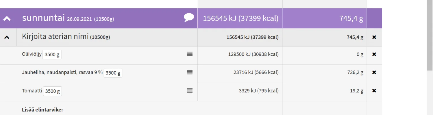Jos syön kuukauden jokainen päivä 3,5kg ruokaa, josta kertyy 3000kcal ja painoni tänä aikana 5kg.