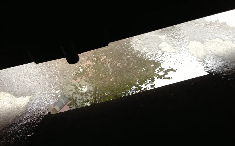 Ensin katoin, että siinä on ruosteinen puukonterä mustalla pöydällä. Sitten luulin sen olevan näkymä matalan auton takaikkunasta ulos. Mutta eipä tainnu mennä oikein?