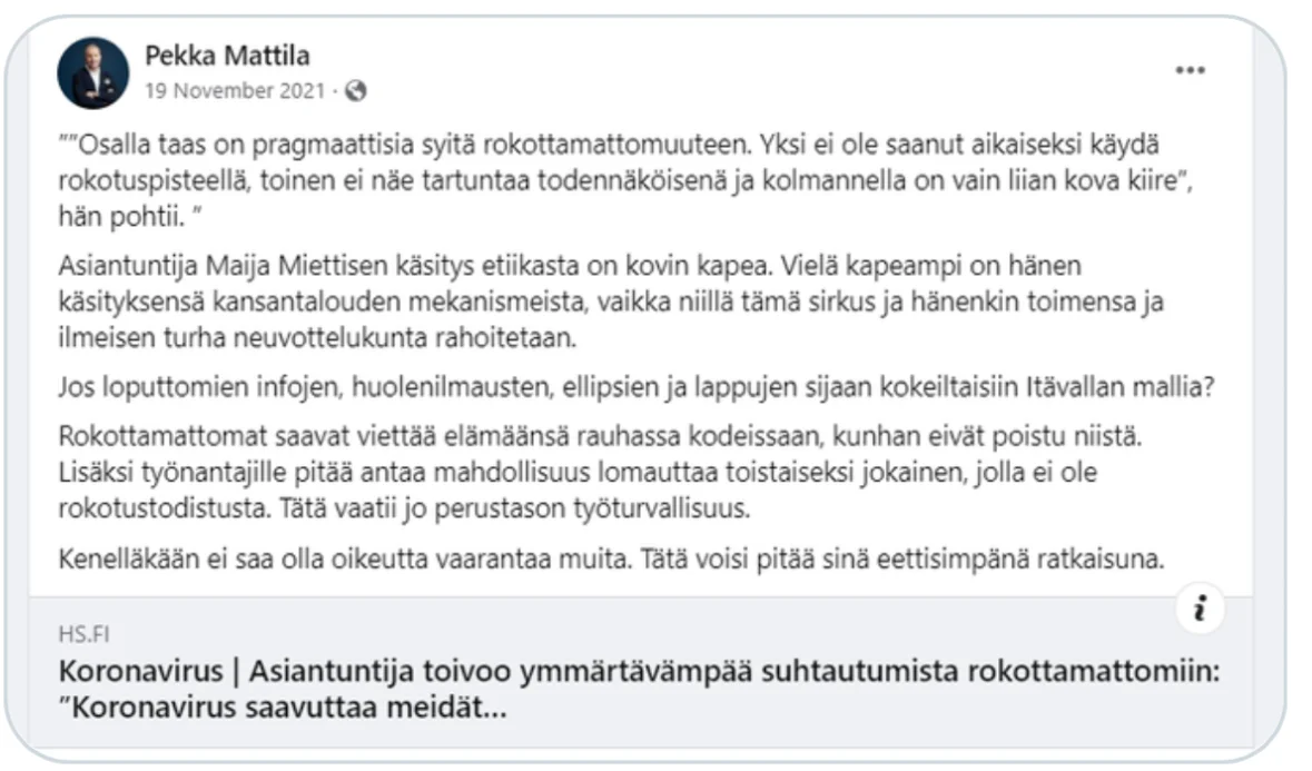 Vuonna 2021 ikävakioitu kuolleisuus nousi Suomessa 1,4 prosenttia edellisvuodesta.