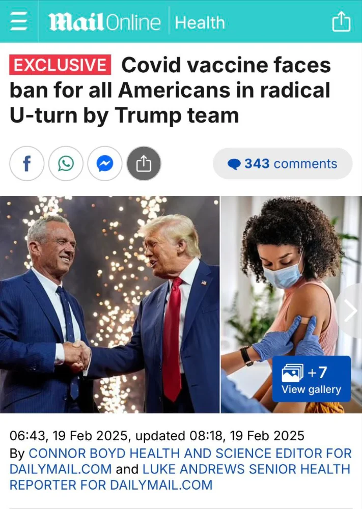 DailyMail.com also understands Robert F Kennedy Jr has privately expressed concerns about the vaccines and signaled he is open to axing them if the data supports it.