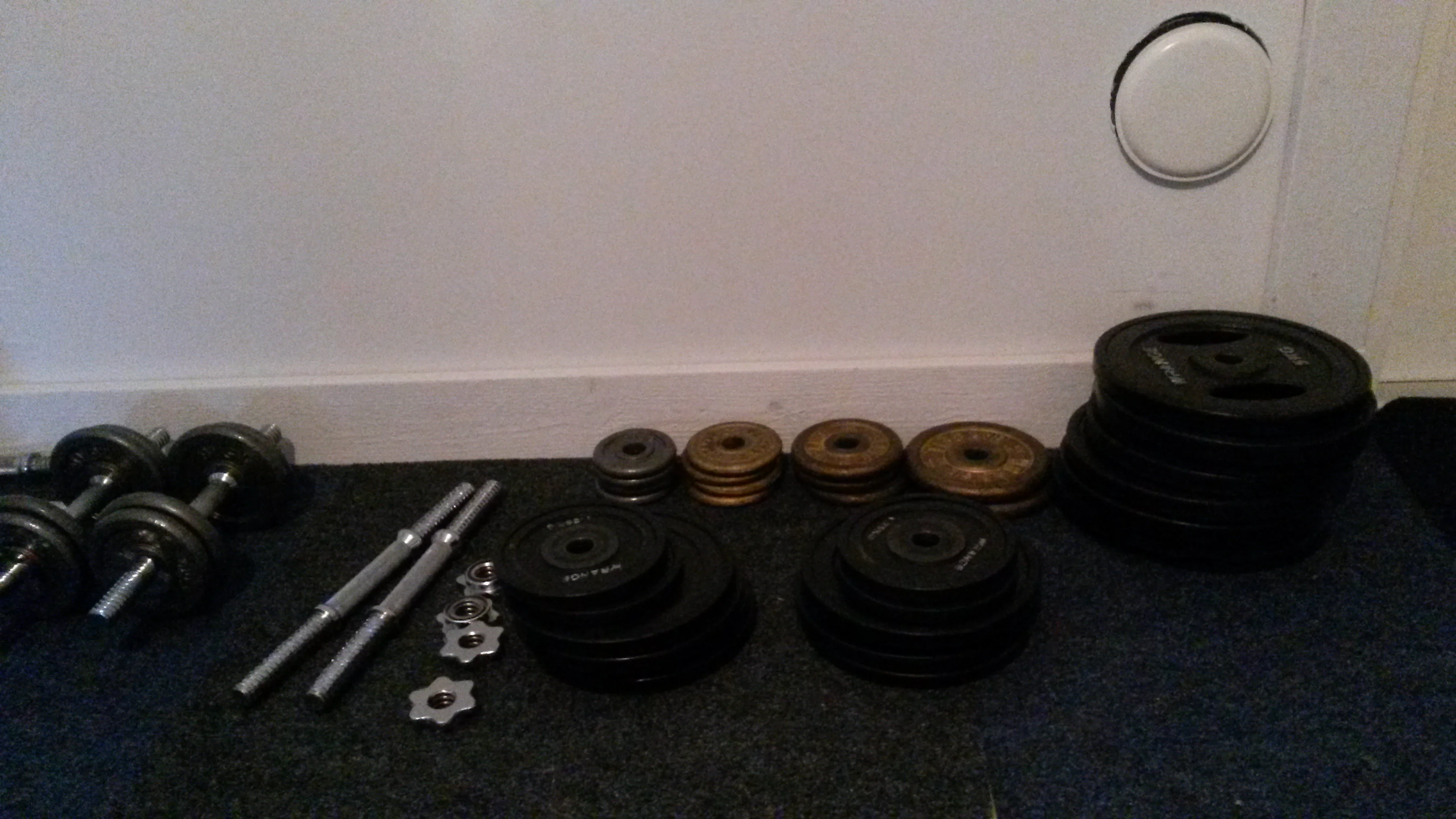 Joo vesiputkien päällä pitää ottaa varman päälle. Pitää itekkin nyt itseasiassa väsäillä lava niin voi vähän huolettomammin laskea painot lattiaan.