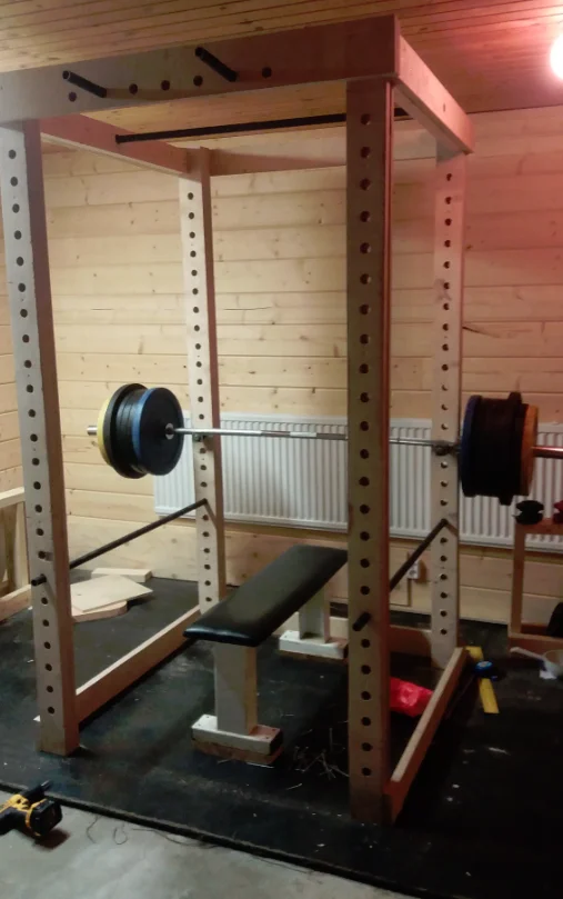 Ajattelin tosiaan että tuon räkin teen ite saa sitten kyykättyä yms. Penkkiäkin ajattelin että jos ite teen sais mieluisen, torissa ja kaupoissa halvimmat melko rimpuloita tai kapean mallisia. Ja maastaveto nyt ei muuta tarvi kun jonkun vanerin alle ja rautaa..