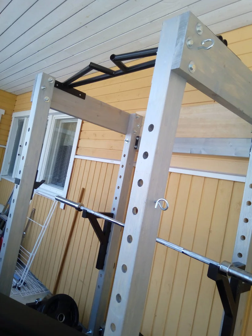 Kyykkyhäkillä ja leuanvetotangolla pääsee jo pitkälle, mutta mitkä kaikki laitteet ovat teidän mielestänne hyvä olla, että kotisalia voidaan pitää sellaisena, että se kilpailee jo salille lähtemisen kanssa tosissaan.