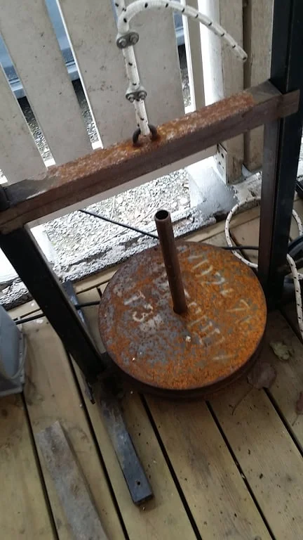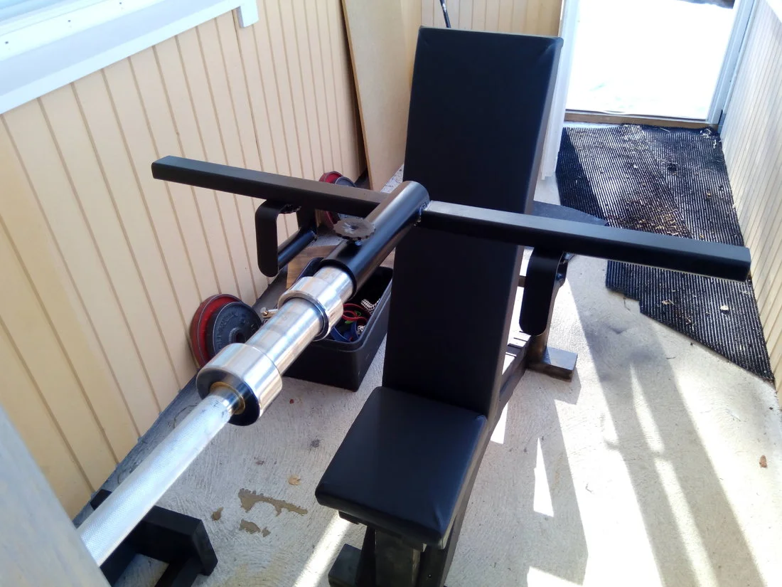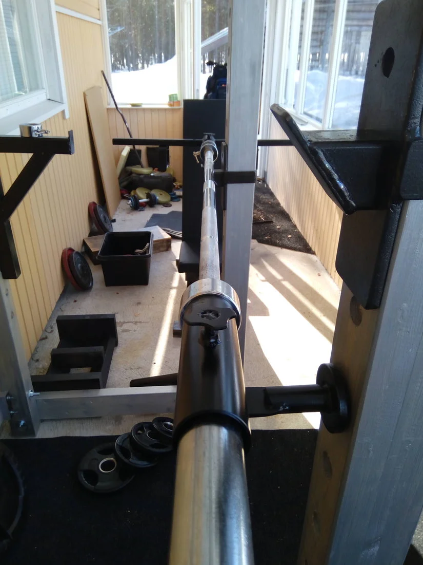 Itse varmaan testaan ekana sellaista että kyykkyhäkin yli kaksi rautaa tai lankkua joiden välissä rullat. Vaijeri rullien kautta häkin yli ja toiseen päähän painopakaksi levy missä tappi keskellä ja tapin päästä lähtee vaijeri. Tappiin voi laittaa levypainoja. Olisi enempi sellainen ojentajatalja ellei sitten rakentele jotain millä saa pidettyä ittensä maassa jos isommilla painoilla tekee. En tiedä toimisiko.