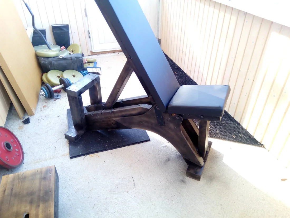 Aika tukevan sai tehtyä puustakin. Säädettävä penkki myös puuta.