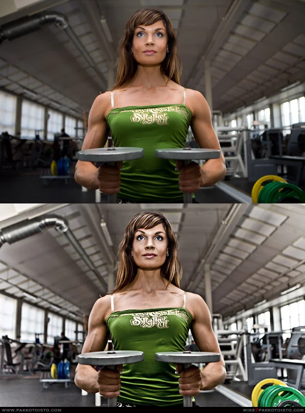 Ja tässä vielä esimerkki, pystyn tekemään kuville aika helvetisti jos niin haluan niiden säilyessä silti realistisena textuureiltaan. Vedän kuitenkin rajan kehon muokkauksessa tähän, en siis muokkaa kenenkään lihaksia isommaksi tai vyötäröä pienemmäksi. Muokkaan kuitenkin ihoa paremmaksi, poistelen mustelmia, ryppyjä, silmäpusseja, arpia, tatuointeja jne. Varjostan tummia kohtia ja korostan vaaleita.