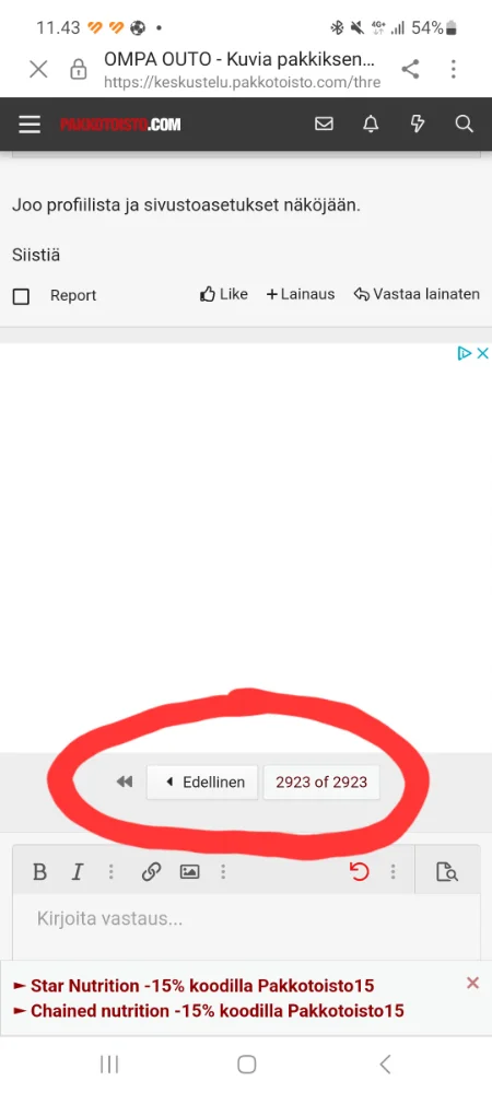 Saisko mahdollisuuden siirtyä viimeiselle sivulle takaisin ketjun yläreunaan? Nyt joutuu selaa ekan sivun loppuun, että on mahdollisuus siirtyä ketjun viimeiselle sivulle. Tai sit en vaan osaa.