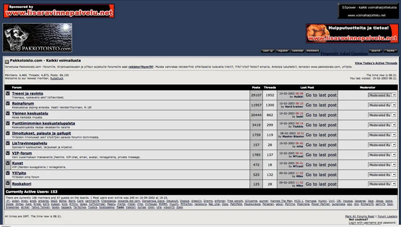 Antton ainakin välillä pyörii täällä, tosin eri nimimerkillä.Kuka toi salaperäinen temppelin rakennuttaja Antton on? Onko vielä Pakkiksella? Jos muistat, niin minkälaisia rautoja liikuttelit kun kävit ekoja kertoja salilla? Sori jos on jo kysytty![]()
