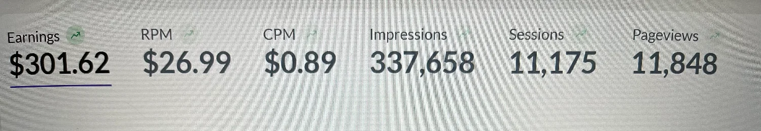 Paljonko on pageviews/month? Toi 300€ mainostuloja kuulostaa tosi pieneltä?