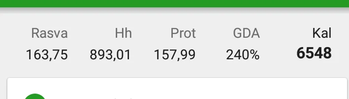 Päivän aikana menee kevytmaitoa varmaan se 1-1,5dl kahvin kaa aterioiden yhteydessä ja vettä vissyä ja sokeritonta mehua yhteensä 5l, arviolta. Joskus syöttäessäni määriä laskuriin saan n. 2000-2300 kcal päivästä riippuen. Oonko iha retuperällä vai en? Välistä tuntuu et näilläkin määrillä on kauhea nälkä ja silti tuntuu et paino junnailee. Tuntuu, että ainakaan vähemmällä ruoalla ei jaksaisi.