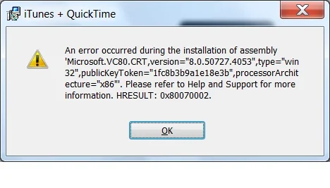 Aika mielenkiintoista miten sulla kusee Adoben asennuksen lisäksi myös iTunes asennuus. Kummassakin esiintyy ainakin VC80.