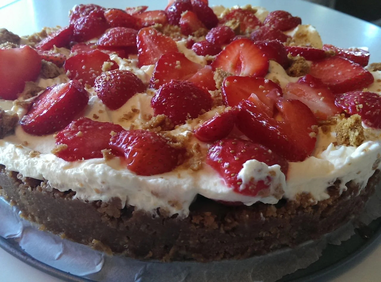 - omaa brownievääntöä, jossa nutella-mansikkarahkakuorrutus