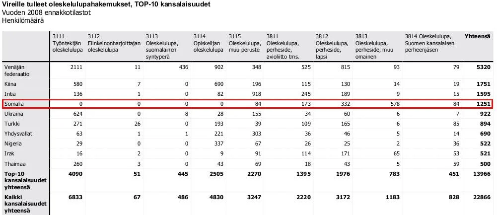 Etiopialainen maahanmuuttajanainen on saanut nettotuloja yhteensä 55.723 euroa. Kun rahan jakaa keskimäärin kuukausille, tulee siitä 2.570 euroa kuukaudessa. Huomioitakoon, että aluksi hänellä oli vain yksi lapsi. Vuoden tuloksi tulee 30.840 euroa netto.