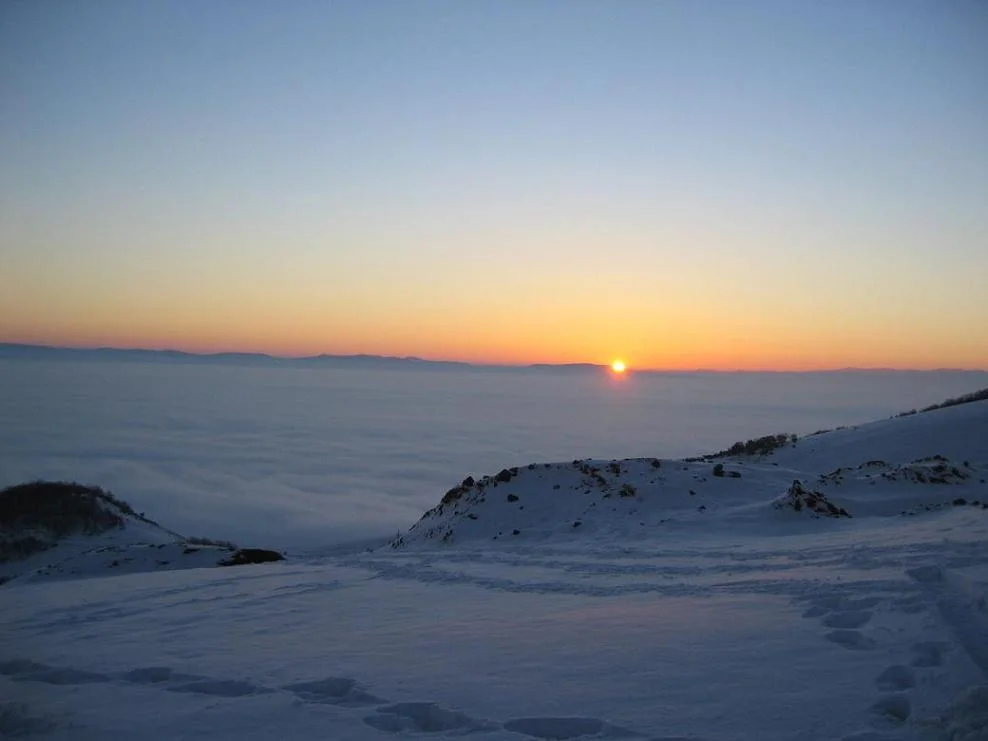 Auringonlasku kuvattu leiriltä käsin ja auringon nousu kuvattu vuorelta n. 1500m korkeudesta hieman kuuden jälkeen. laaksoa peittää aikamoinen sumu/pilvi lautta...