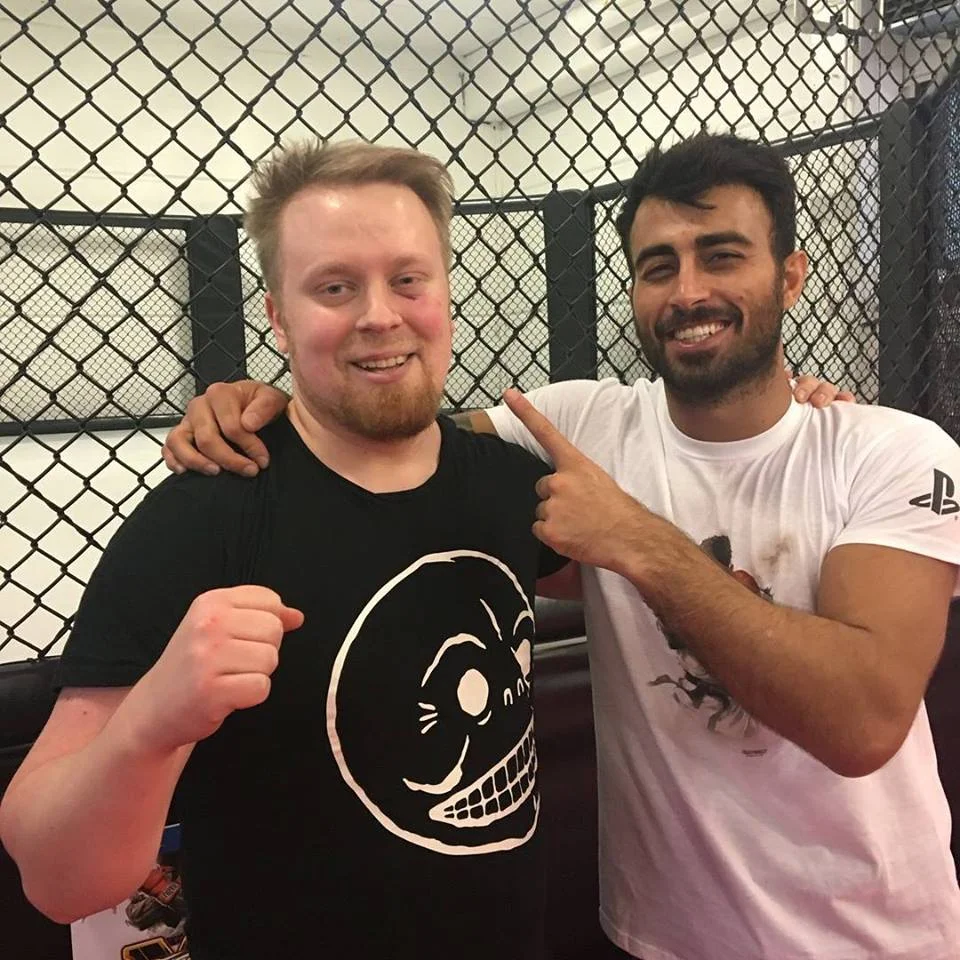 Tapasin Makun GB Gymillä tänään ja pääsin myös häkkiin kokeilemaan. Hyvässä vireessä mies tuntuupi olevan. Hieno mies vaikka jättikin mustan silmän muistoksi. Voin laittaa kuvan kanssa, mutta mobiililla en vain osaa. :D