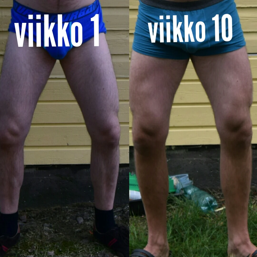 Kattokaa mitä mun kanankoiville on tapahtunut kymmenessä viikossa, kun ruokavalio ja treeni on ammattivalmentajan käsialaa!? Siis luikuthan ne on edelleenkin, mutta tuo muutos 10 vaivaisessa viikossa. Mulla on melko vahva fiilis, että Sensei tietää miten nää hommat toimii.