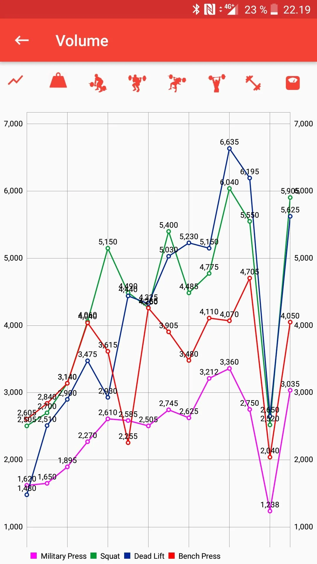 Mä luulen että jotain kuonaa tehny lihaksiin tää volyymin lisääntyminen tässä kohtaa ohjelmaa. Ihan normaali lämmöt tein ja +30 ulkona ja salillakin melkeen, mut sellanen fatigue olo päällä ollu ku lähtee tekemään, sama ollu 6x4 päivästä eteenpäin. Normaalisti homma menee mulla niin että 3-4 sarjaa ja sitten alkaa suorituskyky laskea. Toivon että tää on oire siitä että on vähän vahvistunu ja samaan aikaan väsyny, en tiedä.