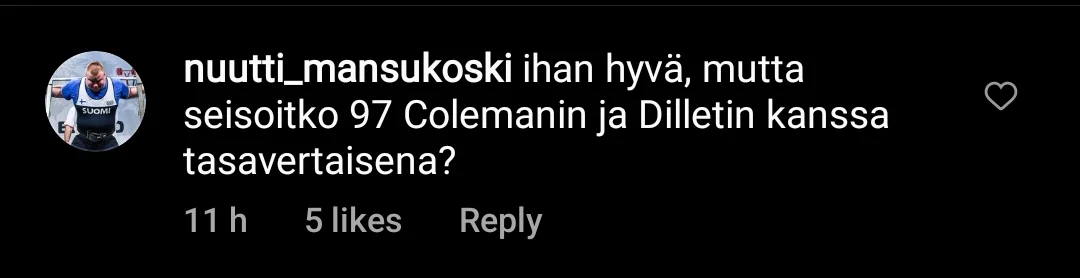 Kyllä suomalainen osaa aina vähätellä. Sen sijaan, että olis hiljaa tai laittais jotain posiviivista, niin laitetaan tommoinen, jota ei kaikki läppänä nää jotka ei skenee jaksa mennä yli 30 vuotta taaksepäin. Oliko Nuutti muuten itse katsomassa sitä kisaa vai vielä vaipoissa ihan vain huomiona, mä olin katsomassa.