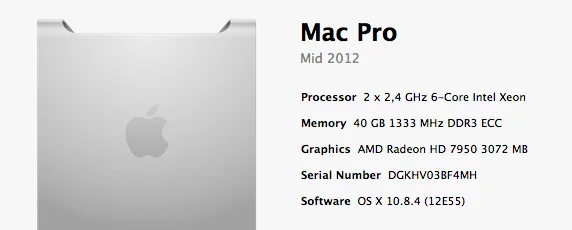 Mac Pro 5.1, 6 core w3680 3,33 ghz, 24 gb ddr3 1333 mhz ram, sapphire radeon hd 7950 3 gb mac edition, 240 gb kingston hyperx ssd sata 3 jossa OSX Mountain Lion, 256 gb crucial m4 ssd sata 3 jossa windows 7 asennettuna bootcampin kautta, 1 tb 7200 rpm hdd, 2 kpl 2 tb ulkoisia firewire 800 liitännällä olevia ulkoisia kovoja, 1 tb usb2 liitännällä oleva ulkoinen kovo. Tällä pyörii windowsin puolella uusimmat pelit täysillä grafiikoilla 1080p resoluutiolla. Läppärinä macbook pro retina, i7 2,4 ghz, nvidia 650m 1 gb näyttis, 8 gb ddr3 1600 mhz ram ja 256 ssd. Sitten on vielä ipad 3. Generation wifi+cellular 64 gb, iphone 5 16 bg ja tämän yhdistelmän kruunaa vielä Apple Tv 3. Generation :) Satun muuten tykkäämään Applen laitteista :D