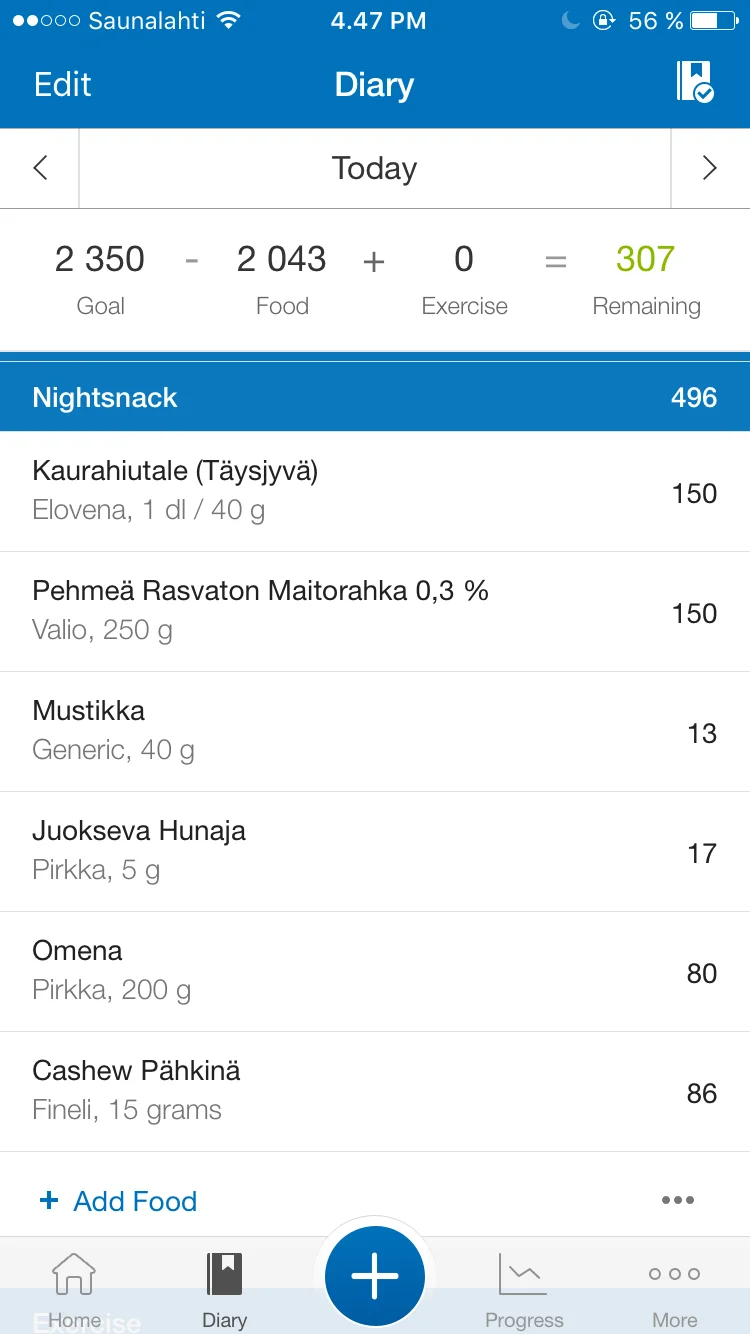 Joo olin viikonlopun reissussa niin tuli sen takia syötyÀ vÀhÀn huonosti lauantaina. Hiilareita vois kyl lisÀtÀ viimeiselle aterialle ennen nukkumaan menoa kun tahtoo tulla nÀlkÀ aina kesken unien mikÀ heikentÀÀ unenlaatua. Teen siis yötöitÀ ja kun tulen kotiin niin syön ja kÀyn nukkumaan.