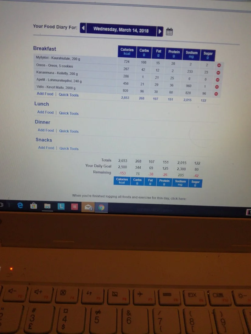 Tähän tulee joskus päälle jokunen banaani ja raejuustoo ja vitamiinii pillerinä. Mut laskujen mukaan sellane 3000kcal tulis eli tarpeeks, mut vähän ykstoikkonen haittaako?