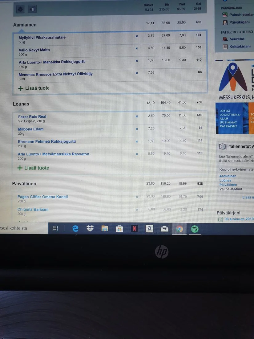 Suurinpiirtein näin syönyt nyt, ehkä pieniä muutoksia joinain päivinä. Vaikuttaako tämä hyvältä ruokavaliolta ylimääräisen rasvan polttoon?