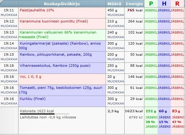 Sinuna lisäisin iha ekana noihi kahteen ekaan ateriaan lisää kaloreita. Lisäät niitä kaloreita ja katsot mihin suuntaan paino lähtee menemään![]()