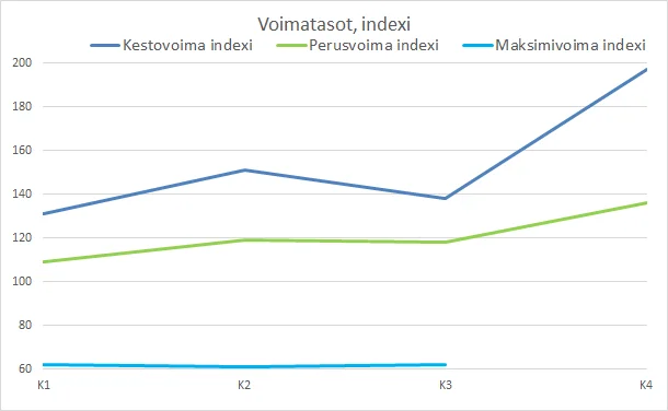 Kulmakertoinen selittää suurimmaksi osaksi liikeiden lisäys, kuten kestovoimakaudellakin.