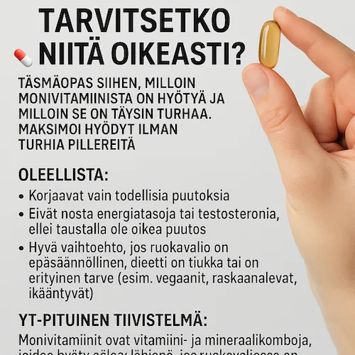 Ne on tarkoitettu paikkaamaan ruokavalion mahdollisia puutoksia, mutta hyvin syövällä ihmisellä ne harvoin tuovat lisähyötyä.